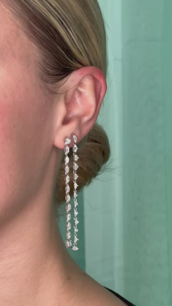 Dancing Linear Shield Diamond Drop Earrings