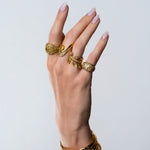 Designed to contour the finger with elegance and structure, it adds dimension to any ring stack or makes a confident statement on its own. Inspired by heritage design and reimagined through a modern lens, this ring blends everyday luxury with sculptural sophistication.