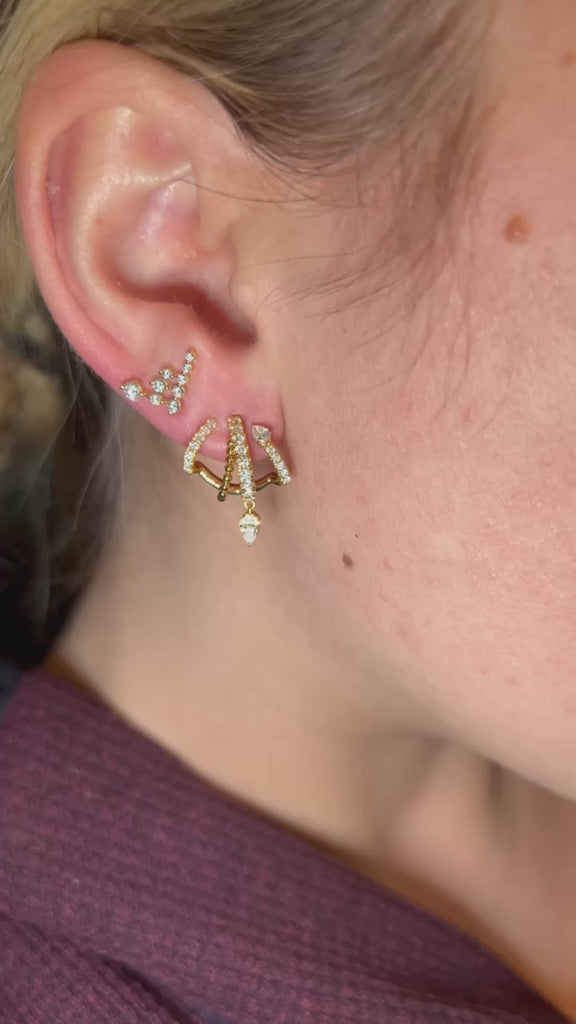 Petite Diamond Pave Cage With Single Pear Drop Earrings