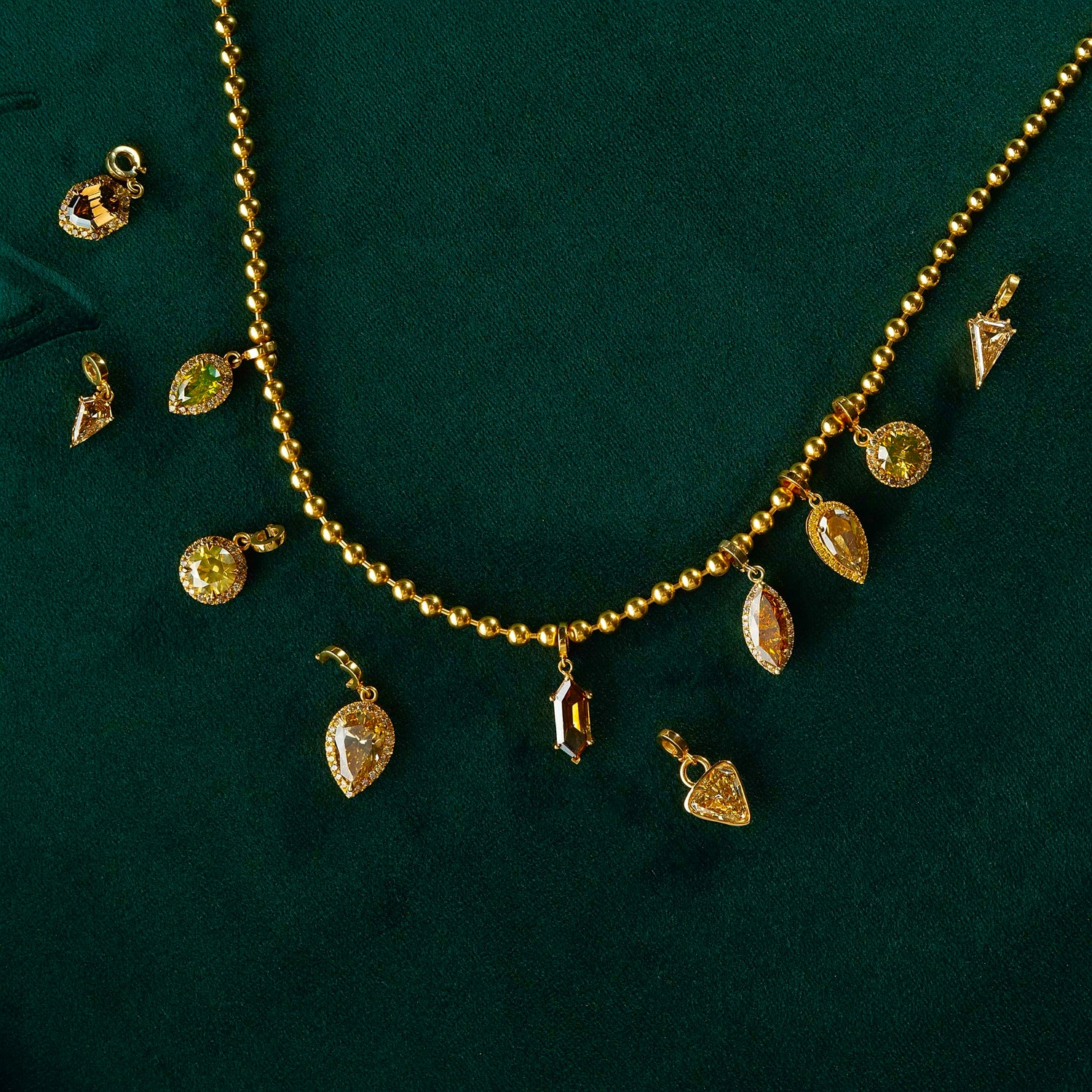 Born from the spirit of transformation, the Cartouche Charm Collection celebrates the art of renewal and reinvention. Choose from a curated selection of limited-edition Fancy Color Diamond and emerald charms, each stone meticulously chosen for its rarity and brilliance. Handcrafted in 18K and 22K gold and finished with an openable bale, every charm is designed to let its natural stone take center stage.