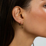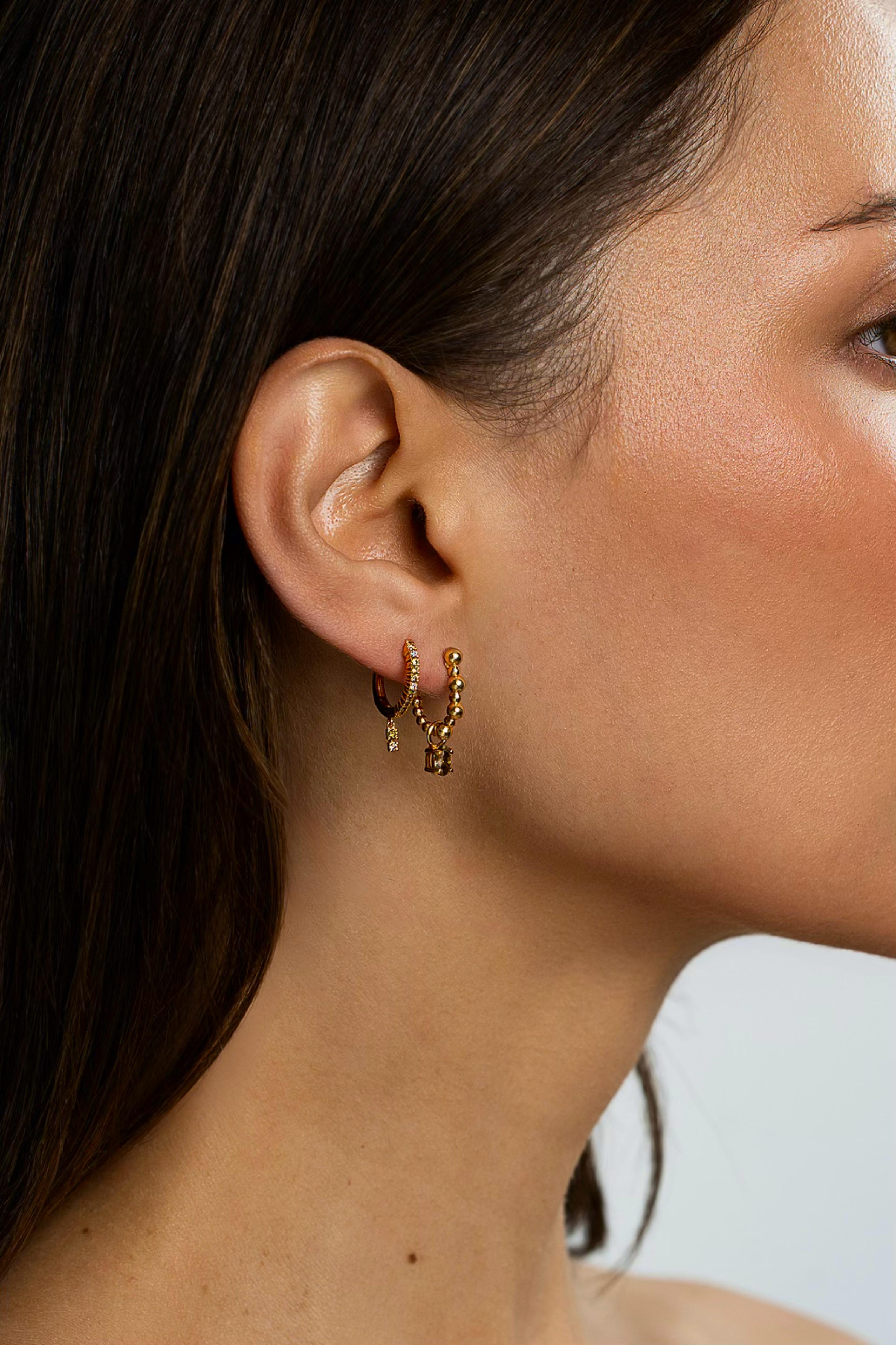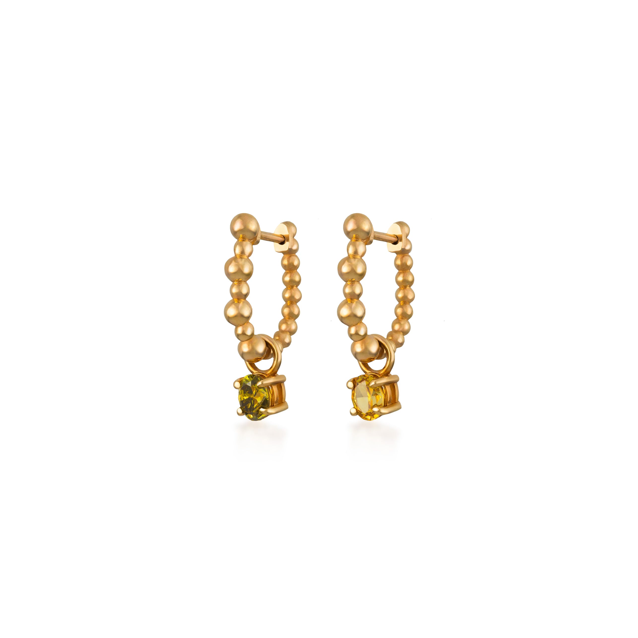 Beaded Huggies With Floating Oval Yin Yang Fancy Diamond Drops