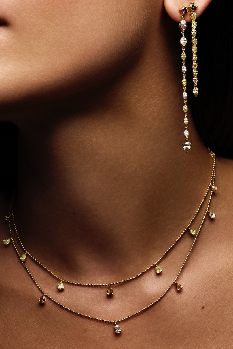 Dancing Linear Fancy Color Pear Diamond Drop Earrings