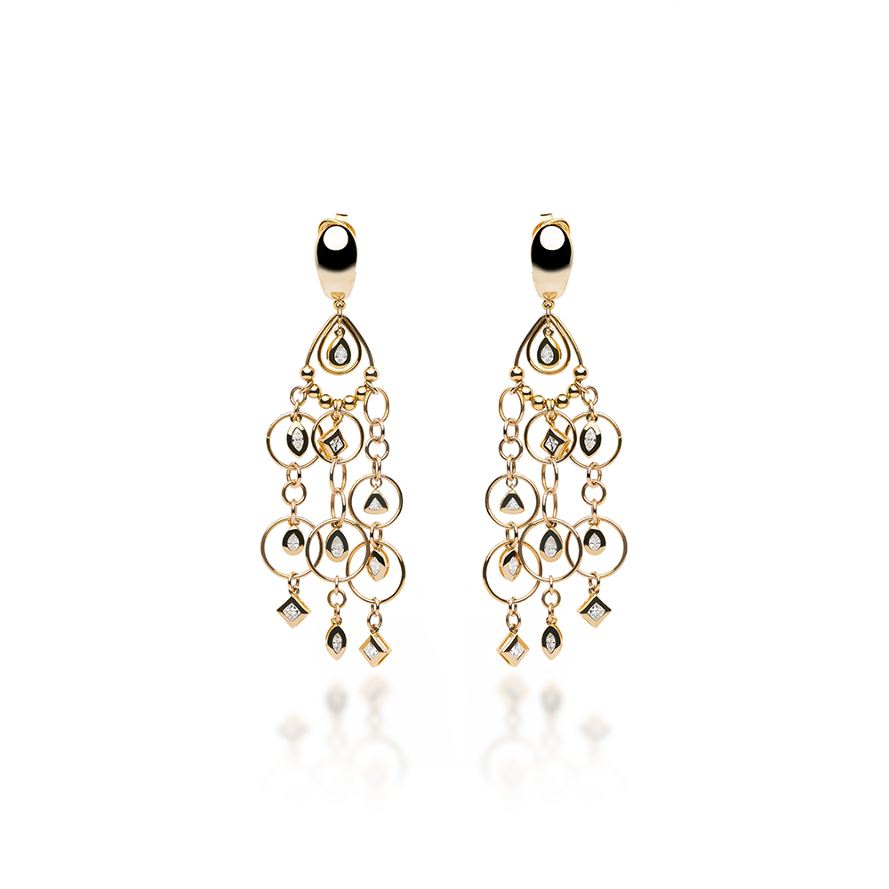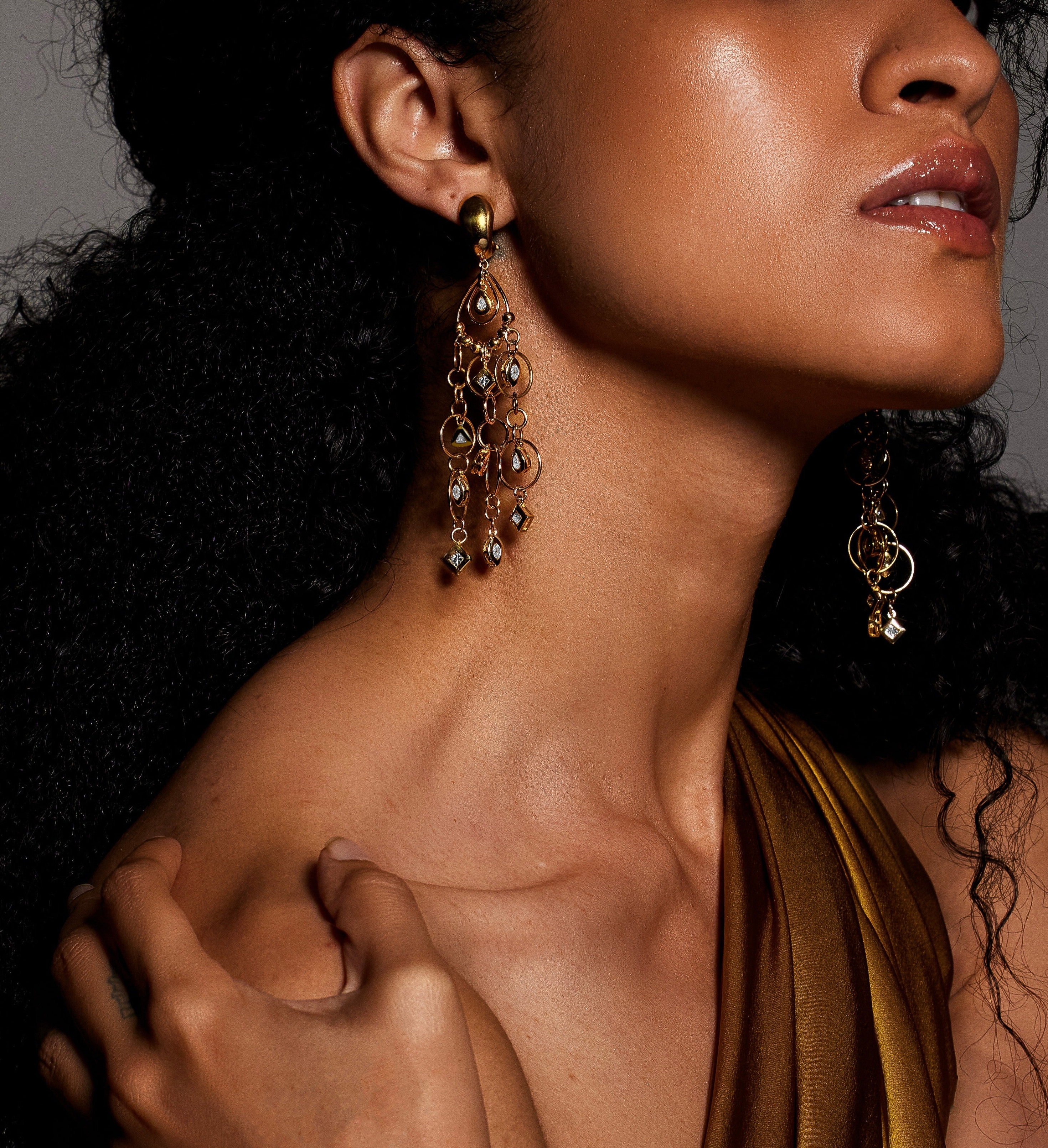 Multi Shape Diamond Bezel Chandelier Earrings.