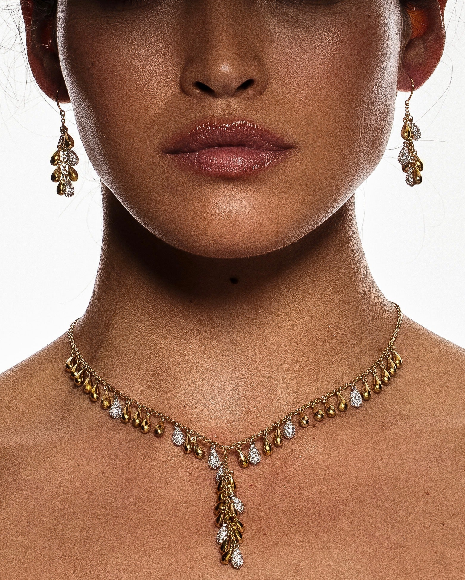 Earrings With Gold & Diamond Encrusted Tear Drops.