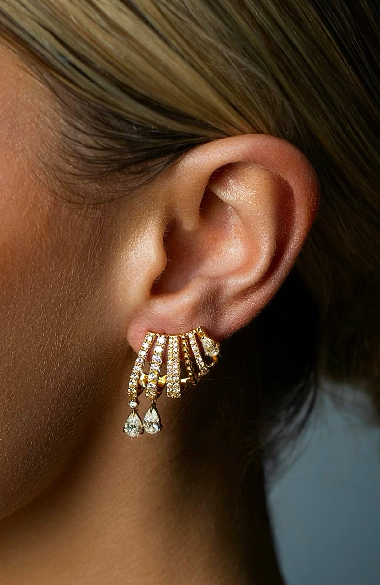 Diamond Pave Cage Pear Drops Earrings