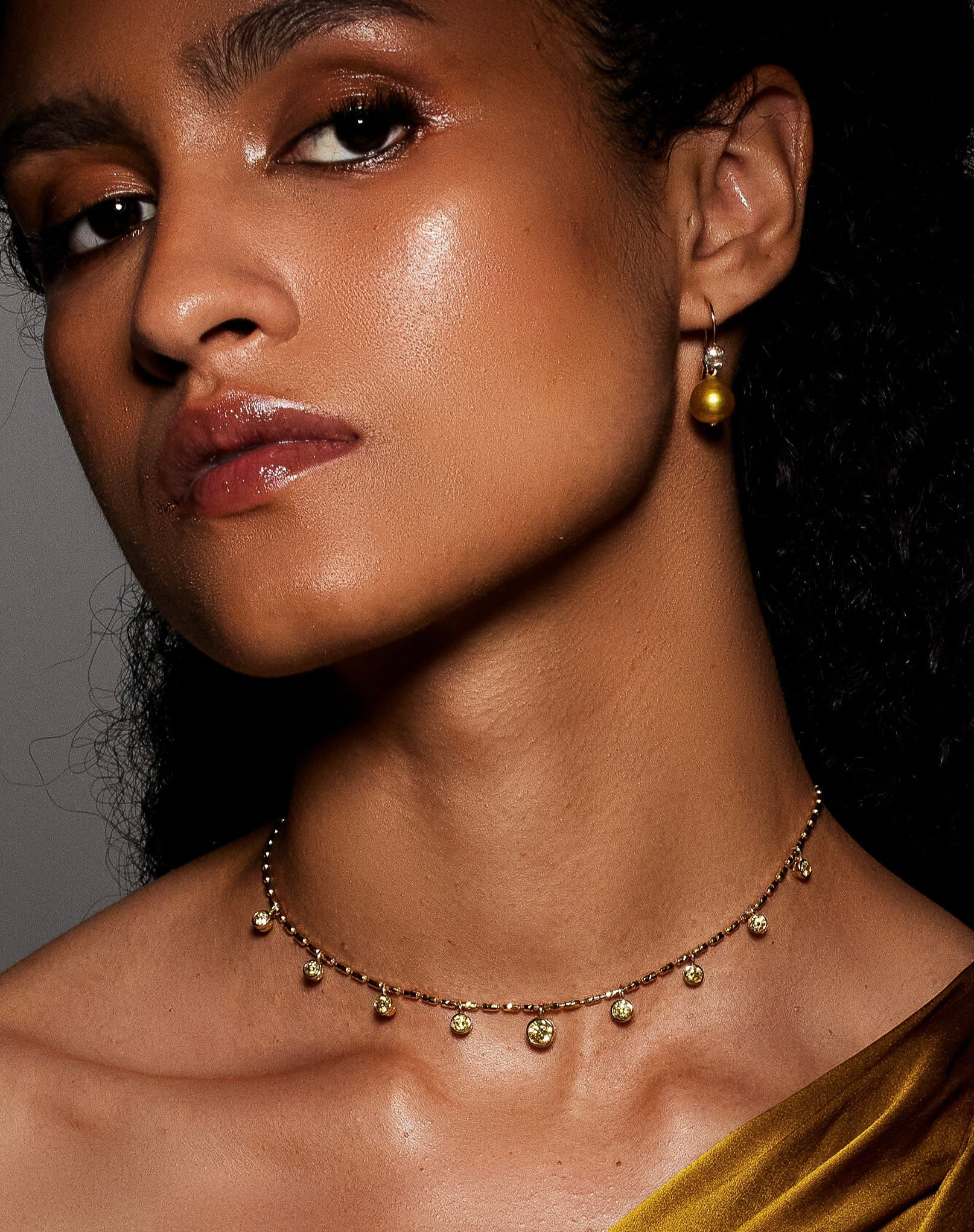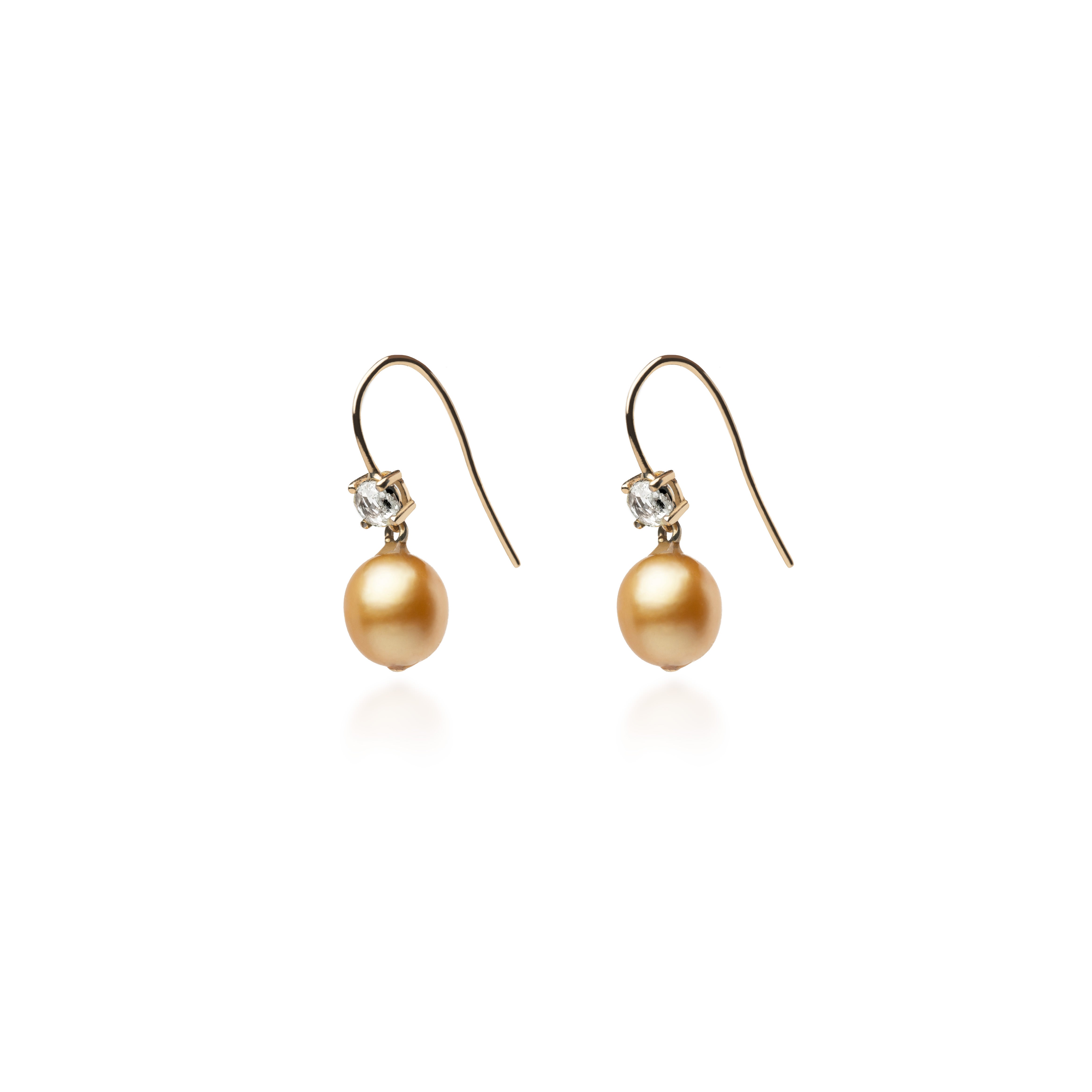 Earrings with gold south sea pearl drops & rose cut diamonds