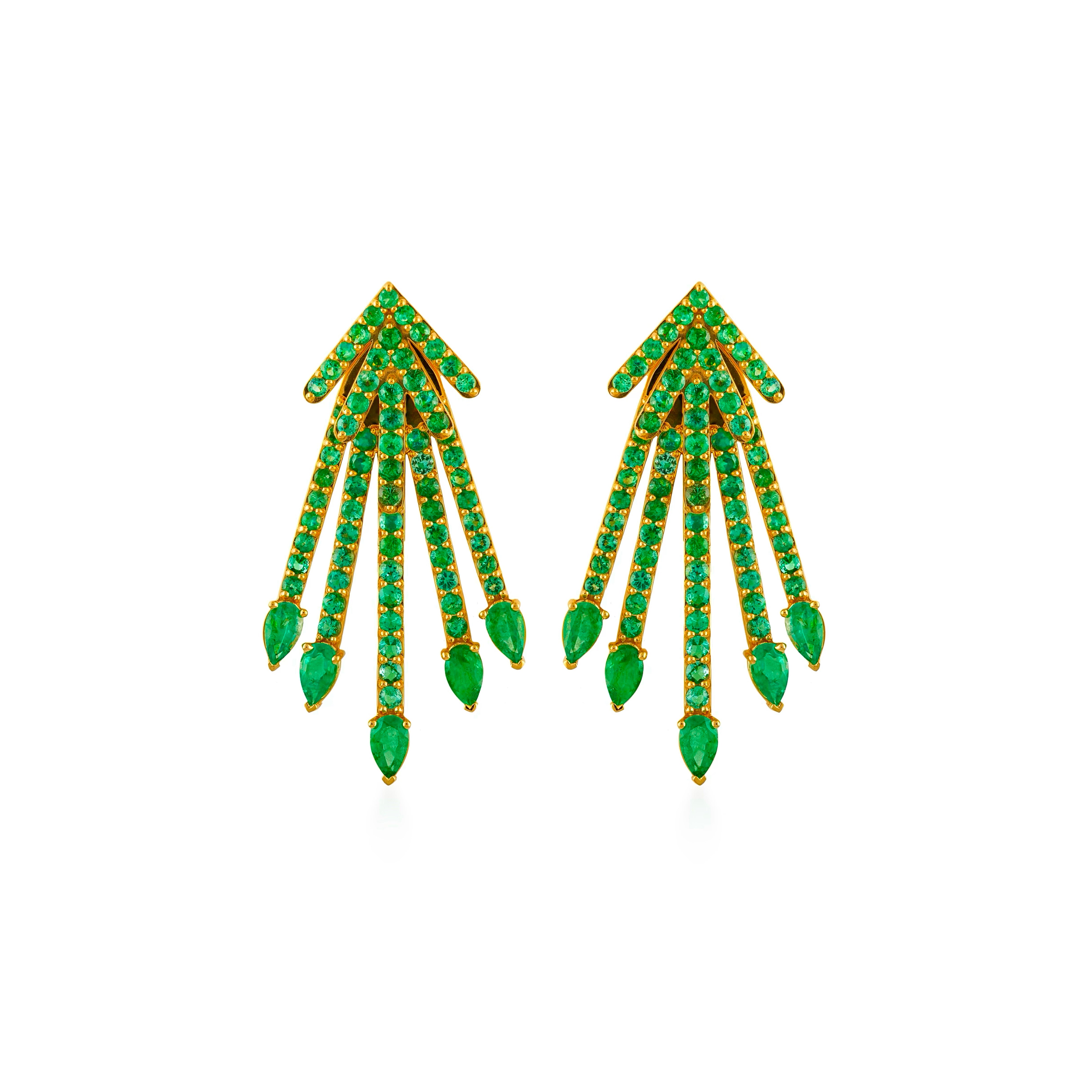 Emerald Starburst Ear Jacket & Earrings Set in Yellow Gold