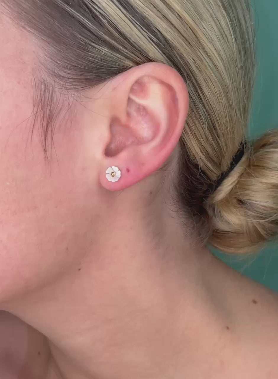 Mother of Pearl Fancy Color Diamond Daisy Stud Earrings