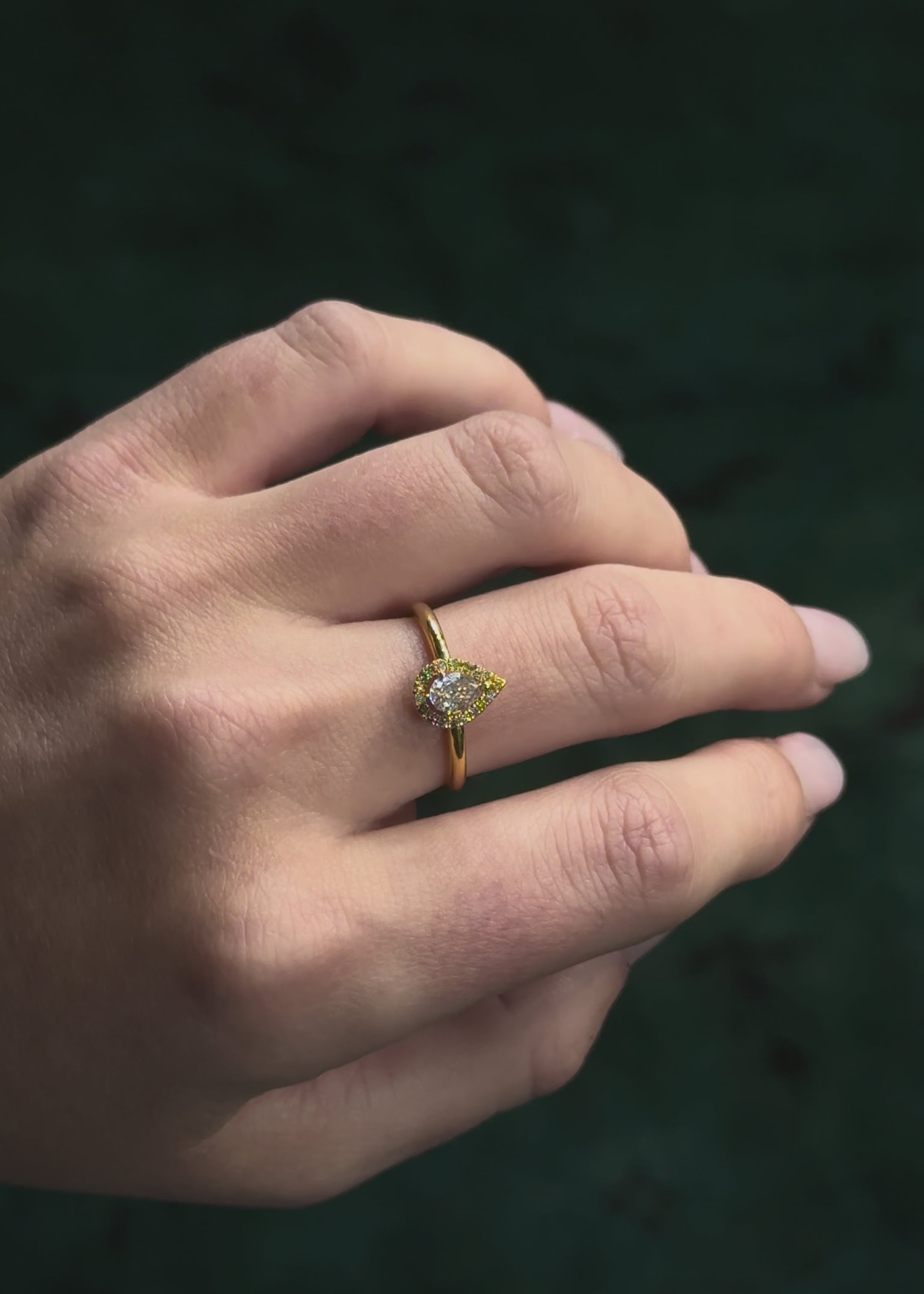 Fancy Color Diamond Pear Halo Circle Pendant Necklace