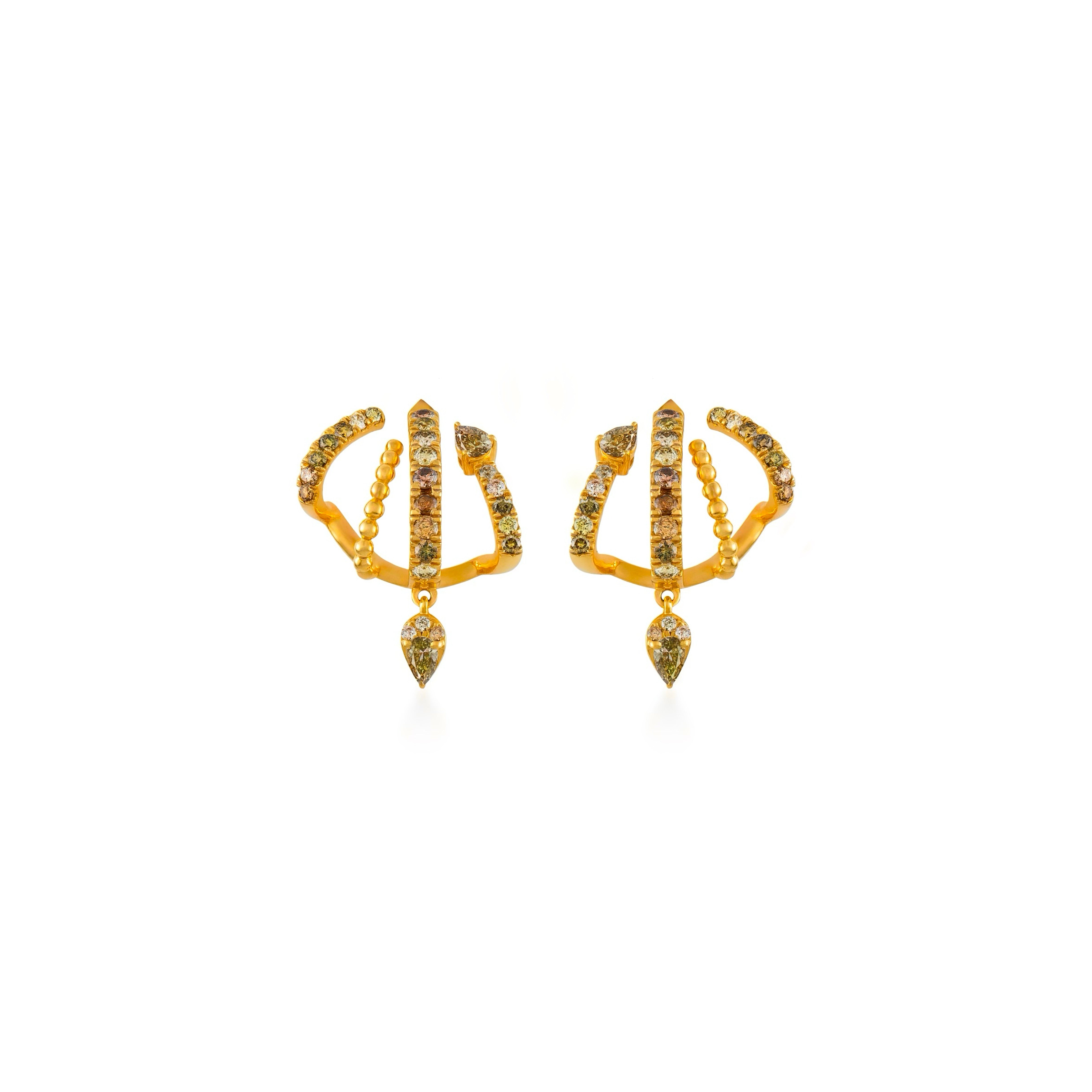 Petite Fancy Color Diamond Pave Cage With Single Pear Drop Earrings