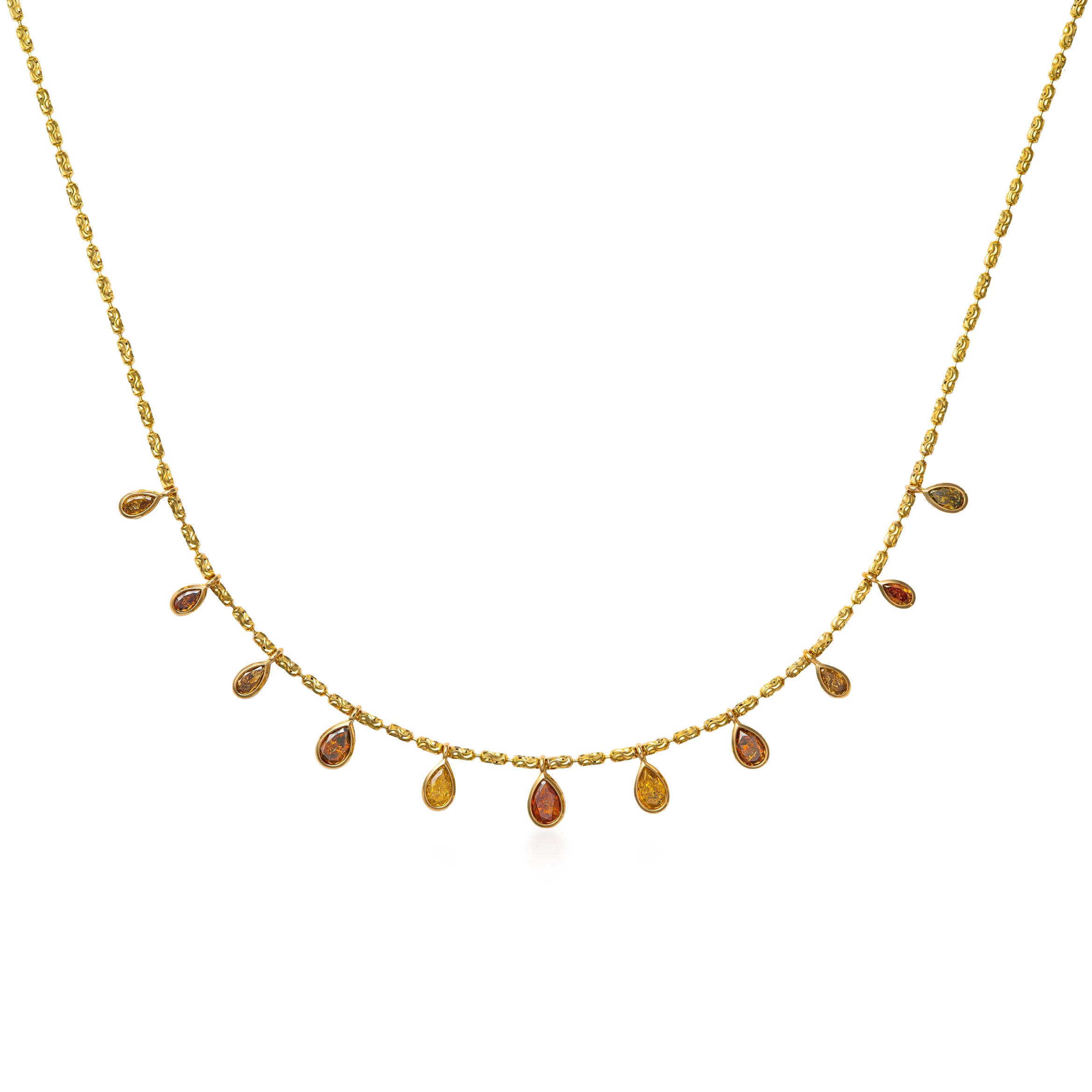 Cartouche Eleven Fancy Yellow Diamond Pear Drops Necklace