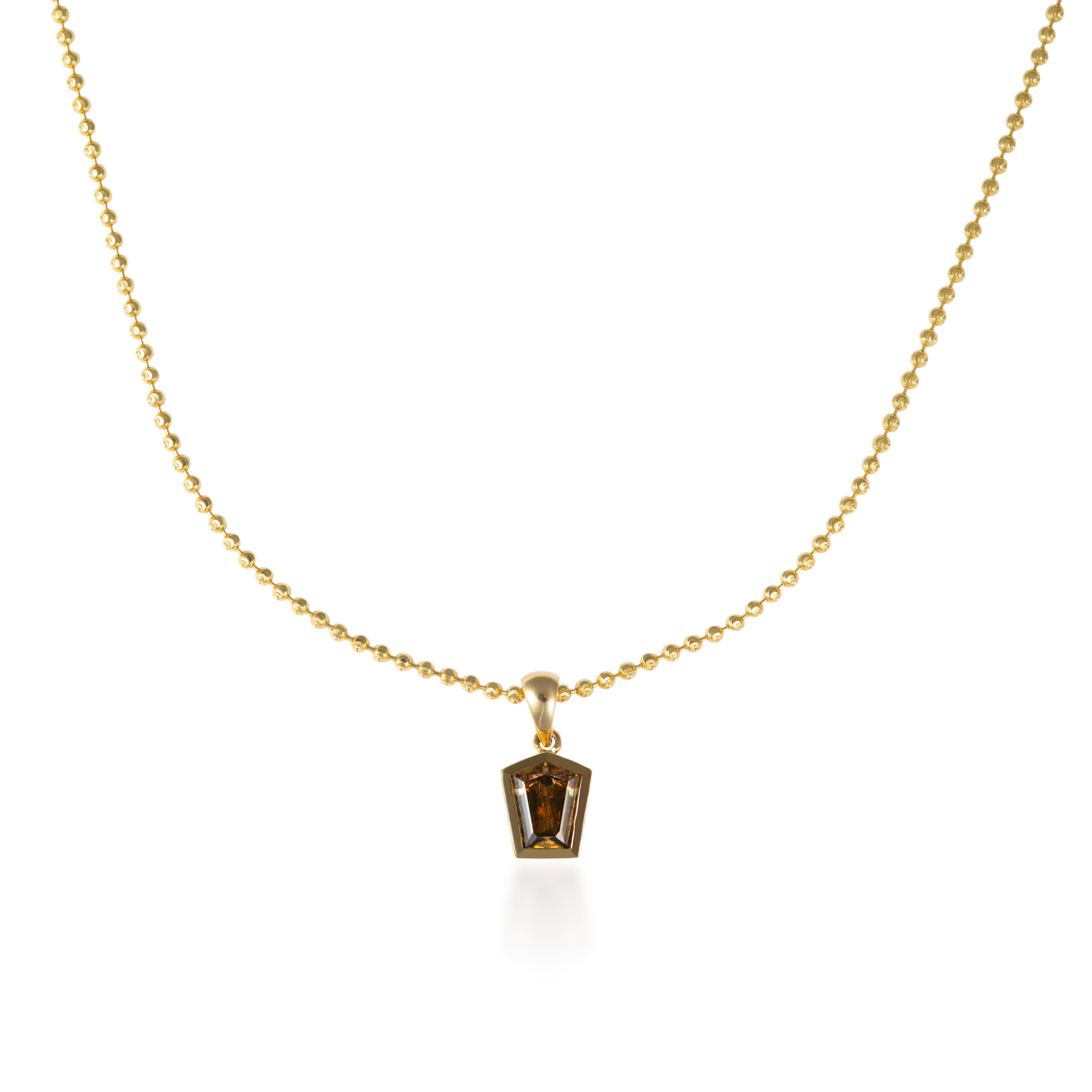 Pendant With Single Shield Shape Diamond In Cognac Shade.