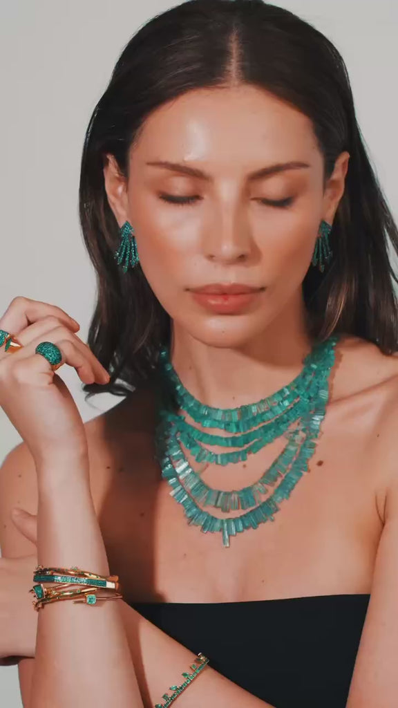 Single Strand Necklace With Emerald Faceted Cylinder Beads