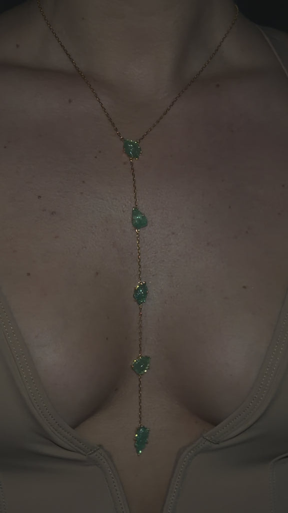 Carved Emerald Leaf Lariat