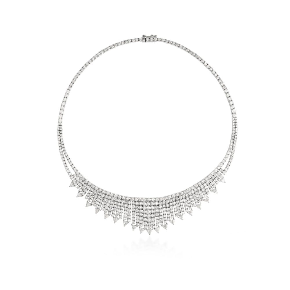 Diamond Mesh Necklace With Round Brilliant & Trillion Diamonds.
