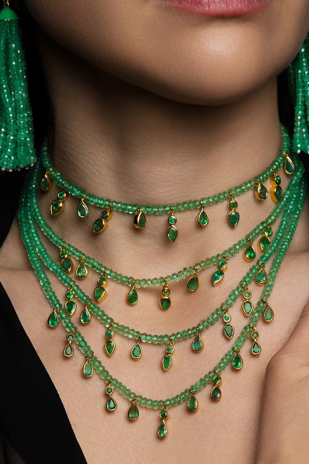 Emerald Bead 11 Marquise Drop Necklace 18"