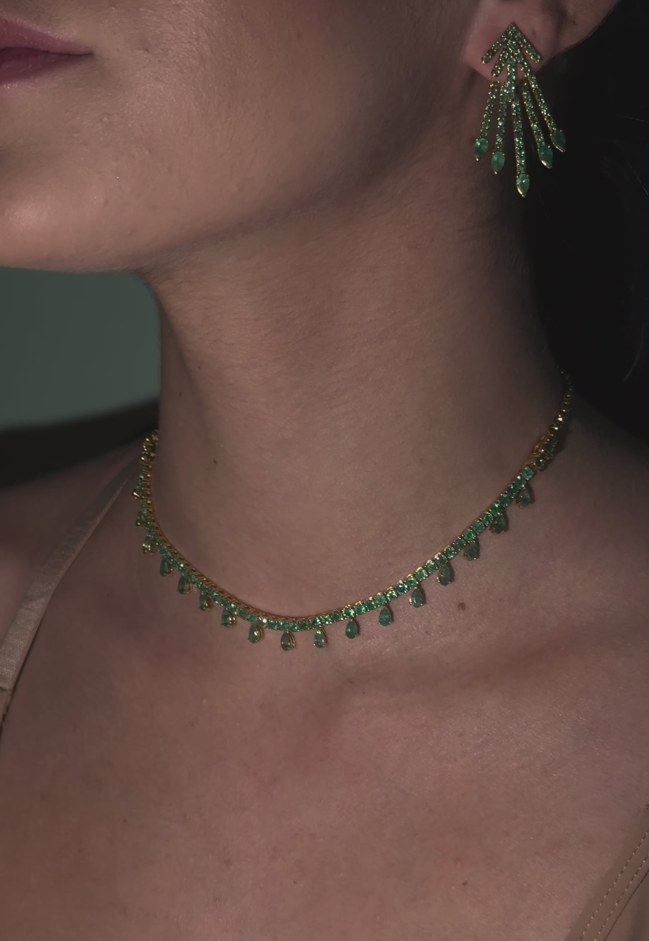 Emerald Pear Shape Diamond Drop 2 in 1 Bracelet & Necklace