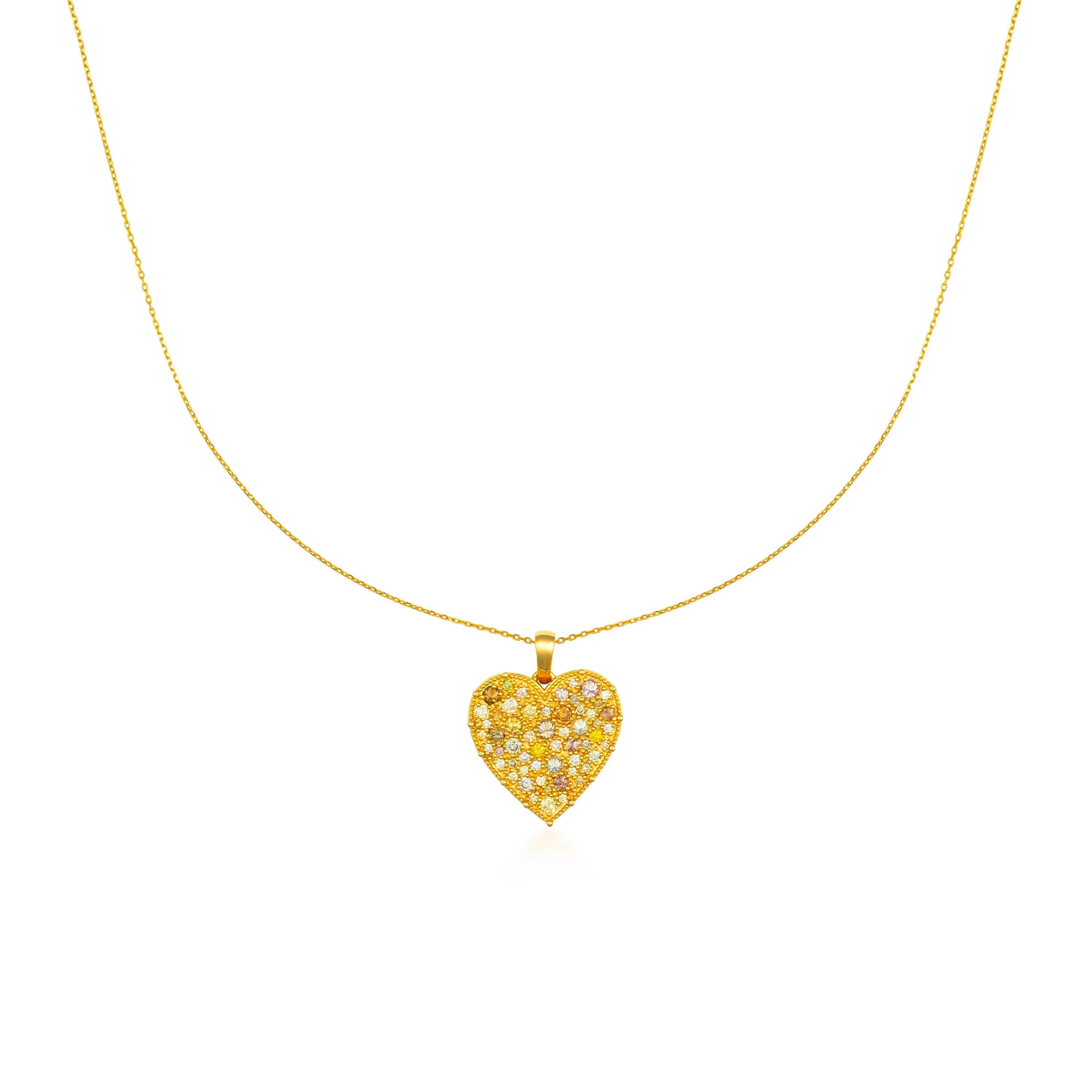 Fancy Color Diamond Pave Heart Pendant Necklace