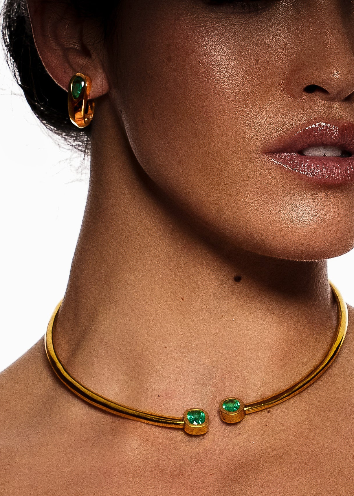 MultI Shape Emerald Gap Collar Necklace In A Bezel Setting