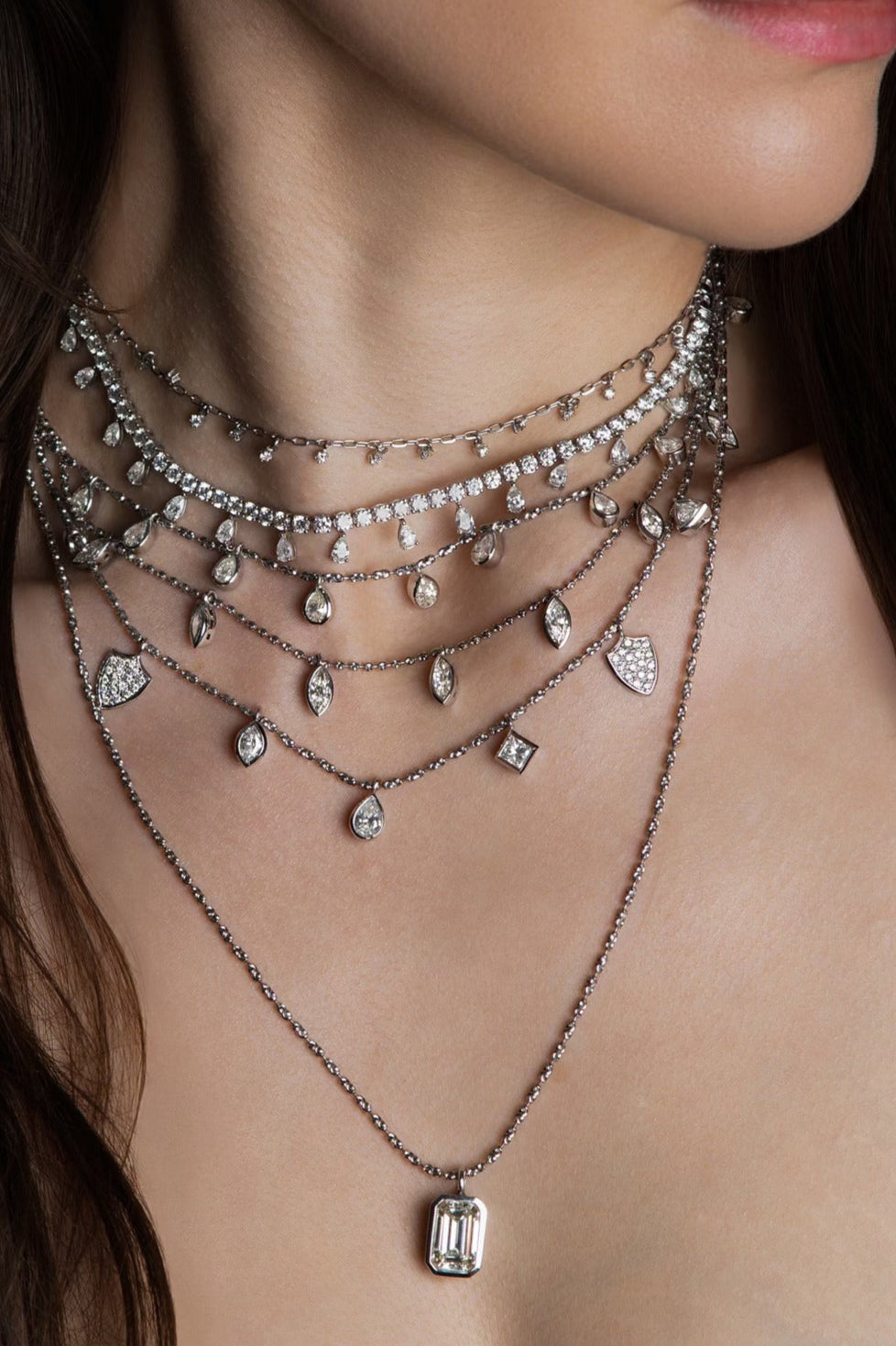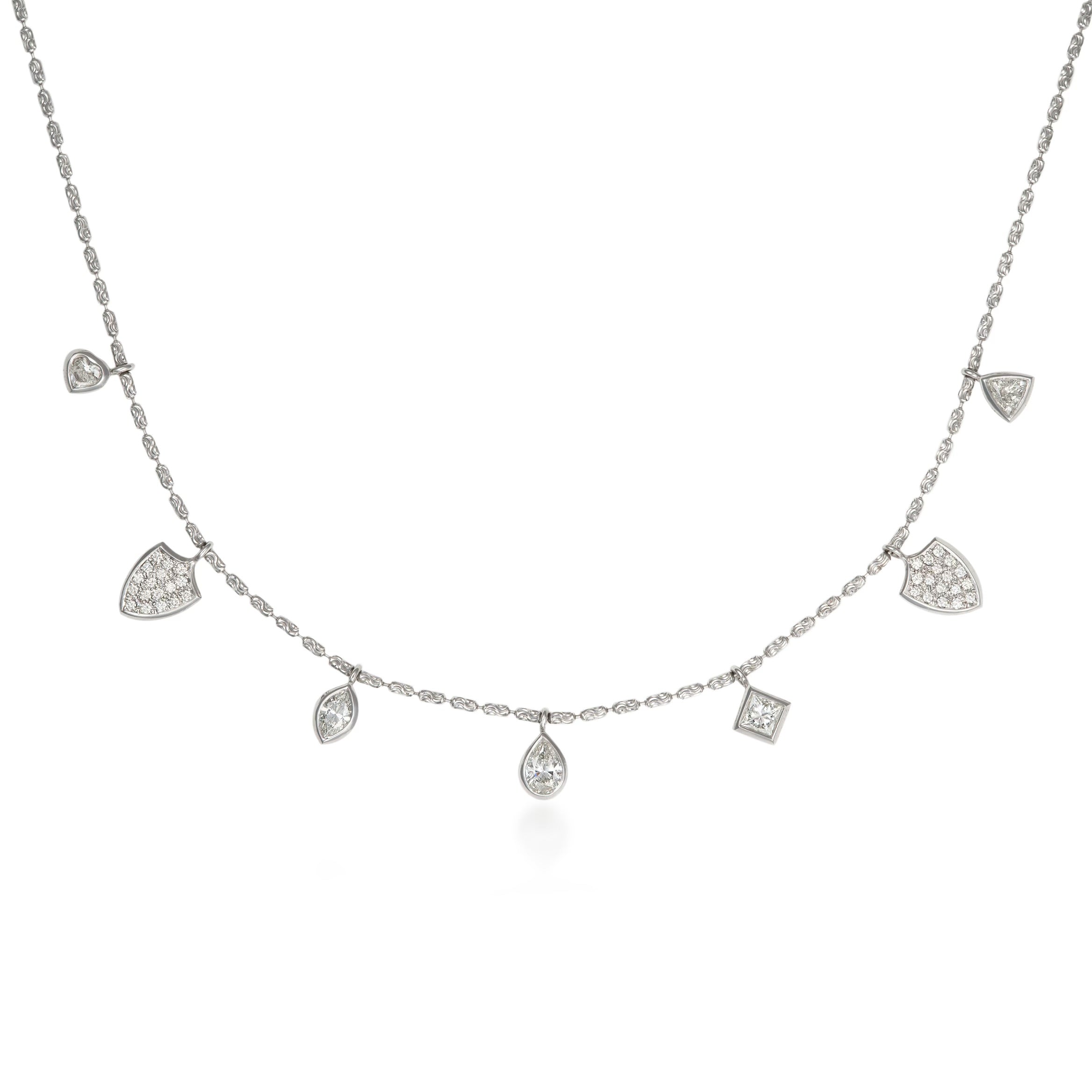 Kumaree 5 diamond drop necklace and two pave shields