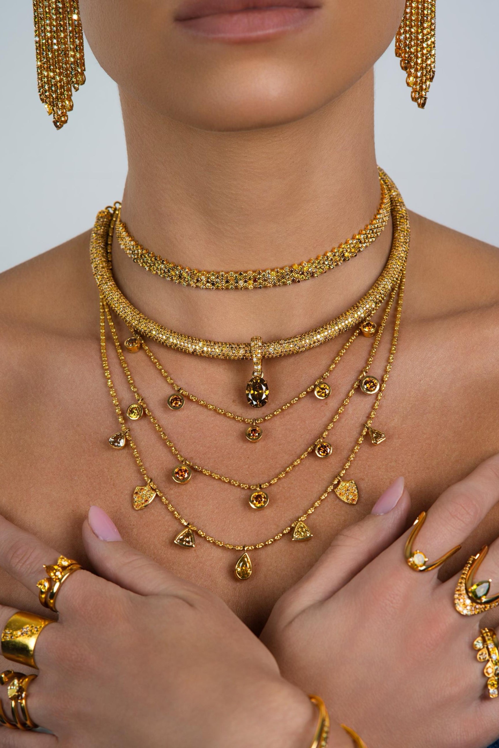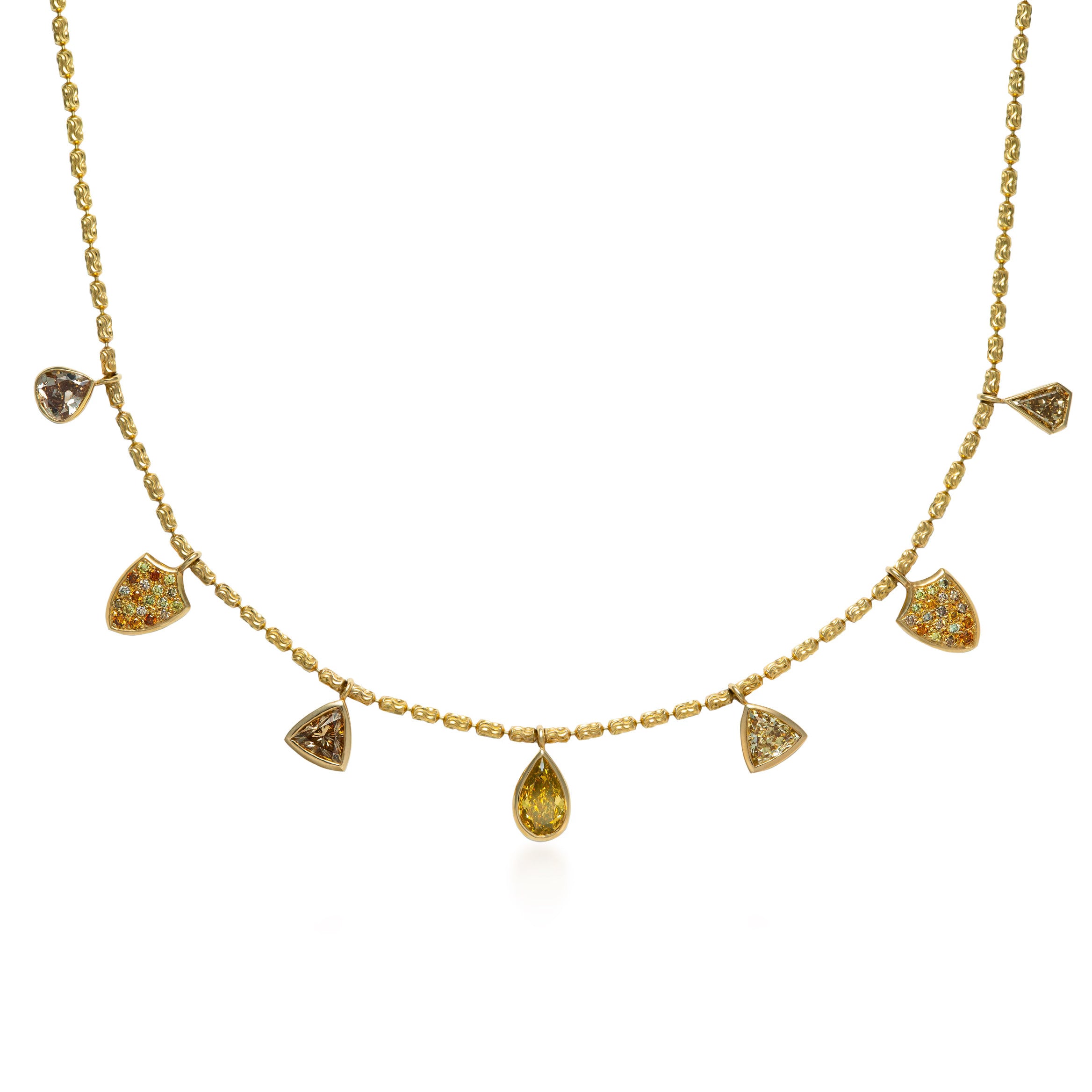 Cartouche Kumaree with Five Fancy Color Diamond Drops and Two Fancy Color Shields