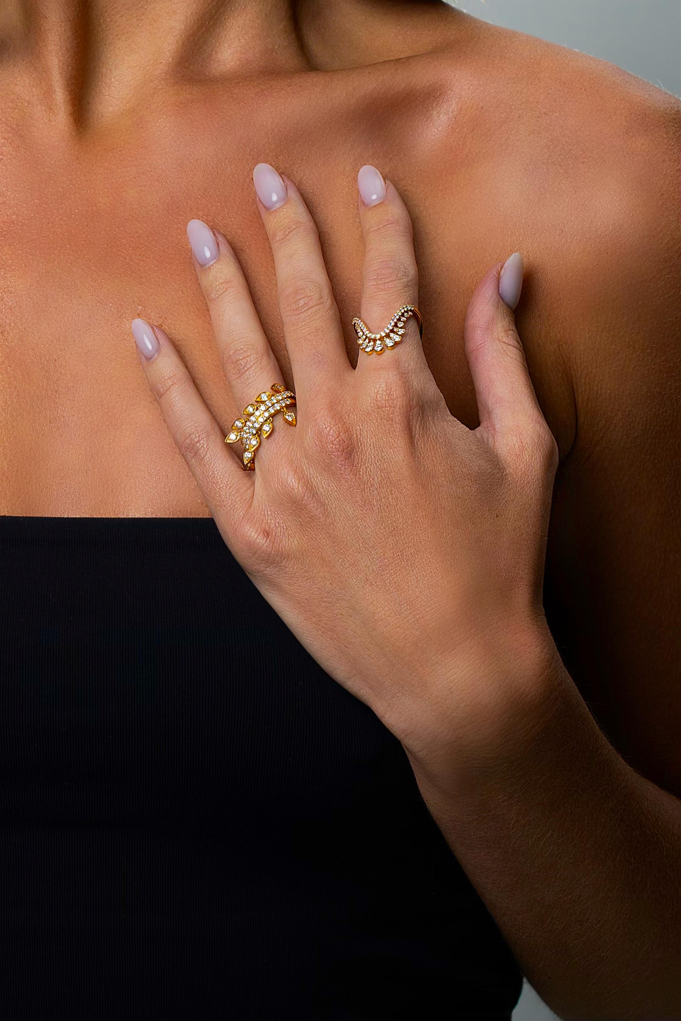 Bold, feminine & ever so beautiful when stacked—the Vanki Ring by Khepri Jewels is a contemporary essential for the modern jewelry collector. This striking V-shaped ring is crafted in a signature blend of 18K and 22K yellow gold, offering a rich golden hue with exceptional brilliance.