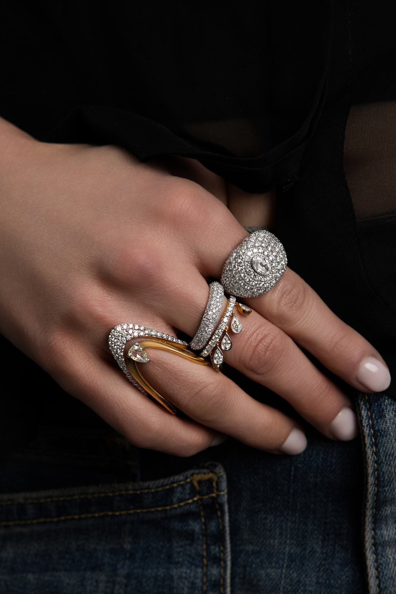 Diamond Pave Dome Ring With A Central Marquise-Cut Diamond