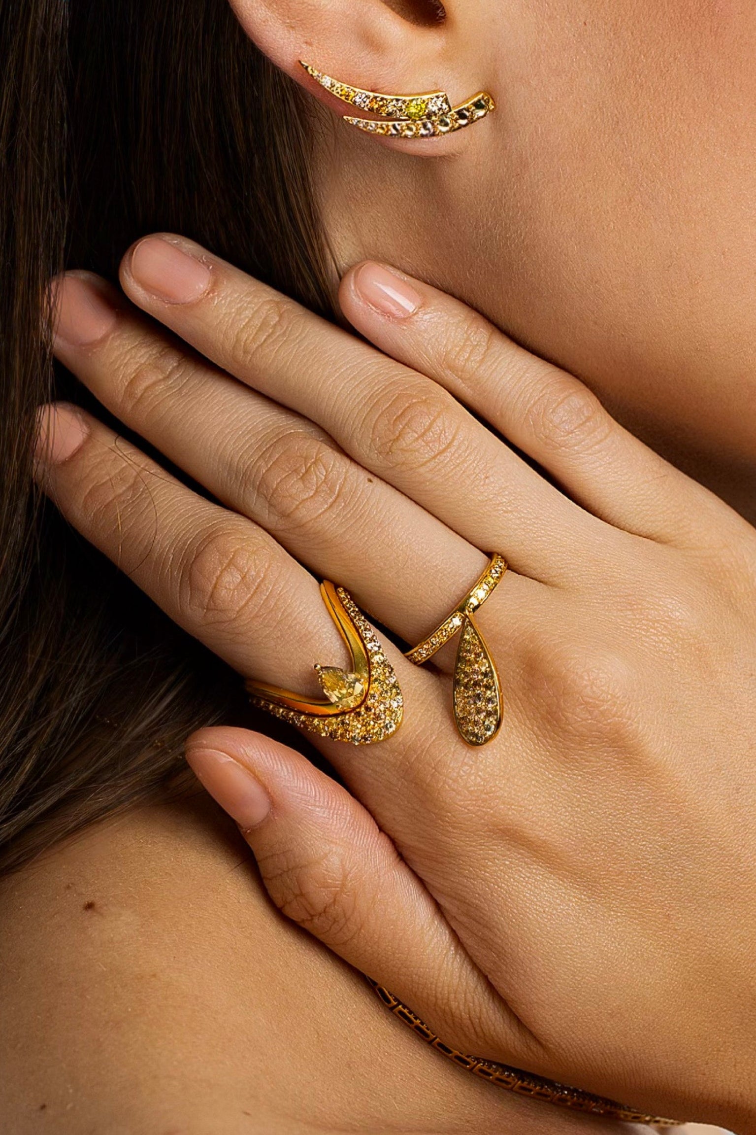 Designed to contour the finger with elegance and structure, it adds dimension to any ring stack or makes a confident statement on its own. Inspired by heritage design and reimagined through a modern lens, this ring blends everyday luxury with sculptural sophistication.