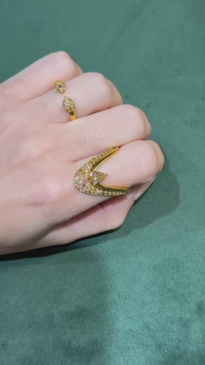 Bold, feminine & ever so beautiful when stacked—the Vanki Ring by Khepri Jewels is a contemporary essential for the modern jewelry collector. This striking V-shaped ring is crafted in a signature blend of 18K and 22K yellow gold, offering a rich golden hue with exceptional brilliance.