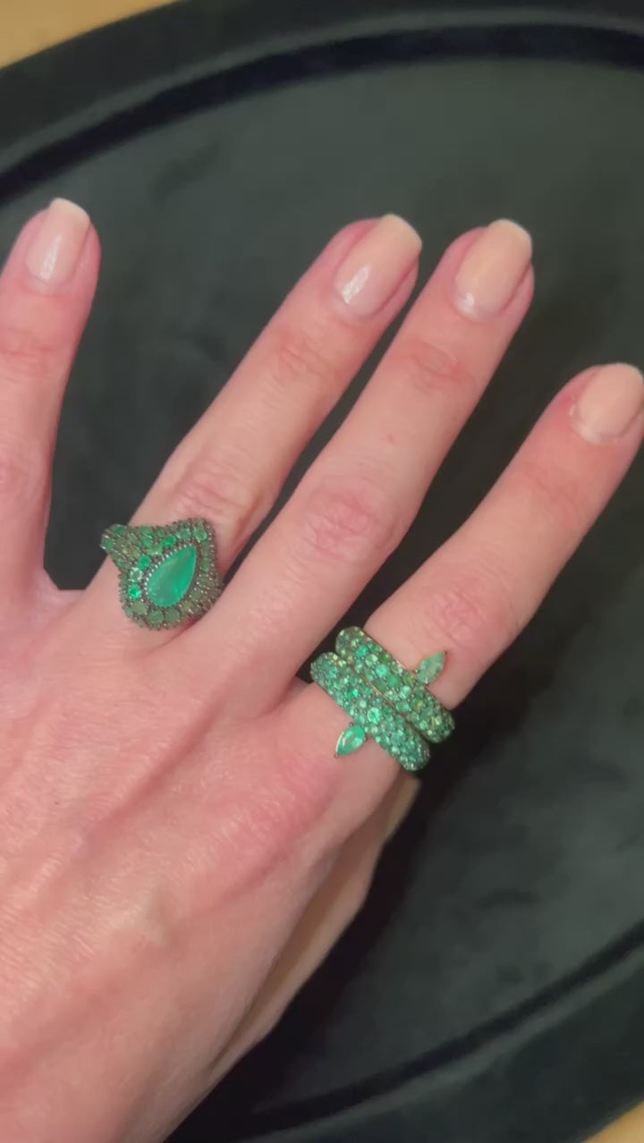 Rhodium-Plated Emerald Pear Floating Cleopatra Ring