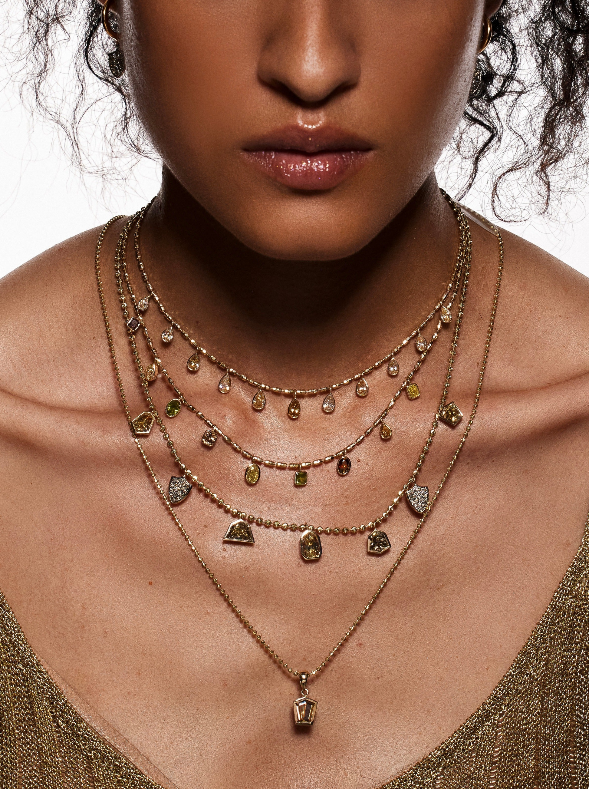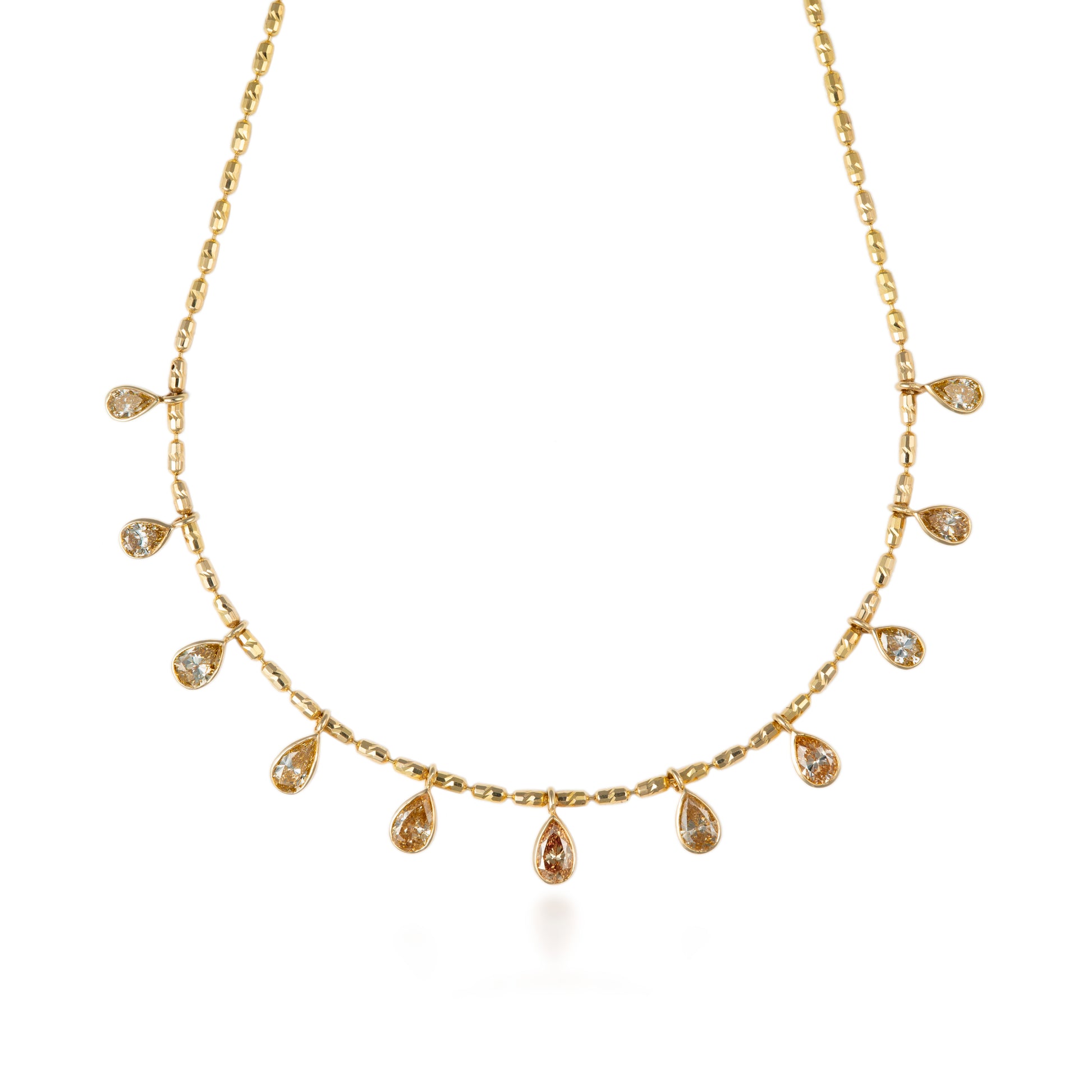 Necklace With 11 Pear-Shaped Diamond Drops In Various Shades Of Cognac.