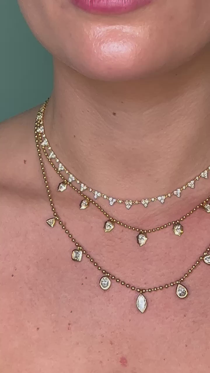 Seven Pear-Shaped Diamond Bezel Shield Drop Necklace