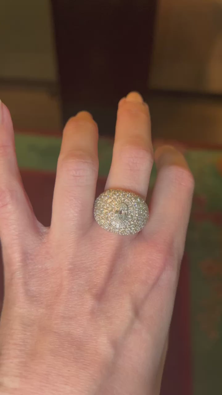 Diamond Pave Dome Ring With A Central Marquise-Cut Diamond