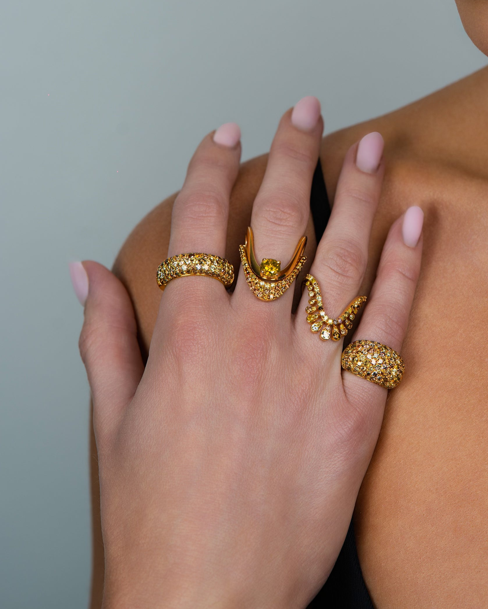 Designed to contour the finger with elegance and structure, it adds dimension to any ring stack or makes a confident statement on its own. Inspired by heritage design and reimagined through a modern lens, this ring blends everyday luxury with sculptural sophistication