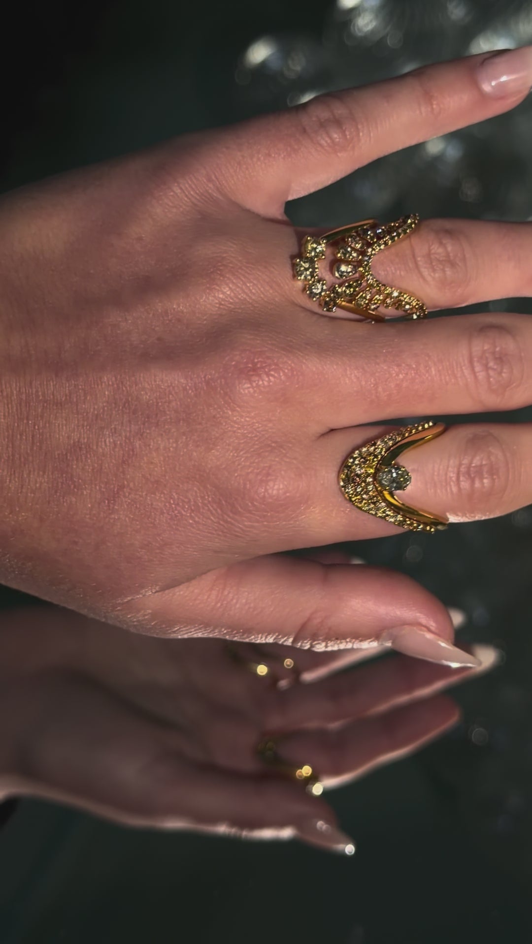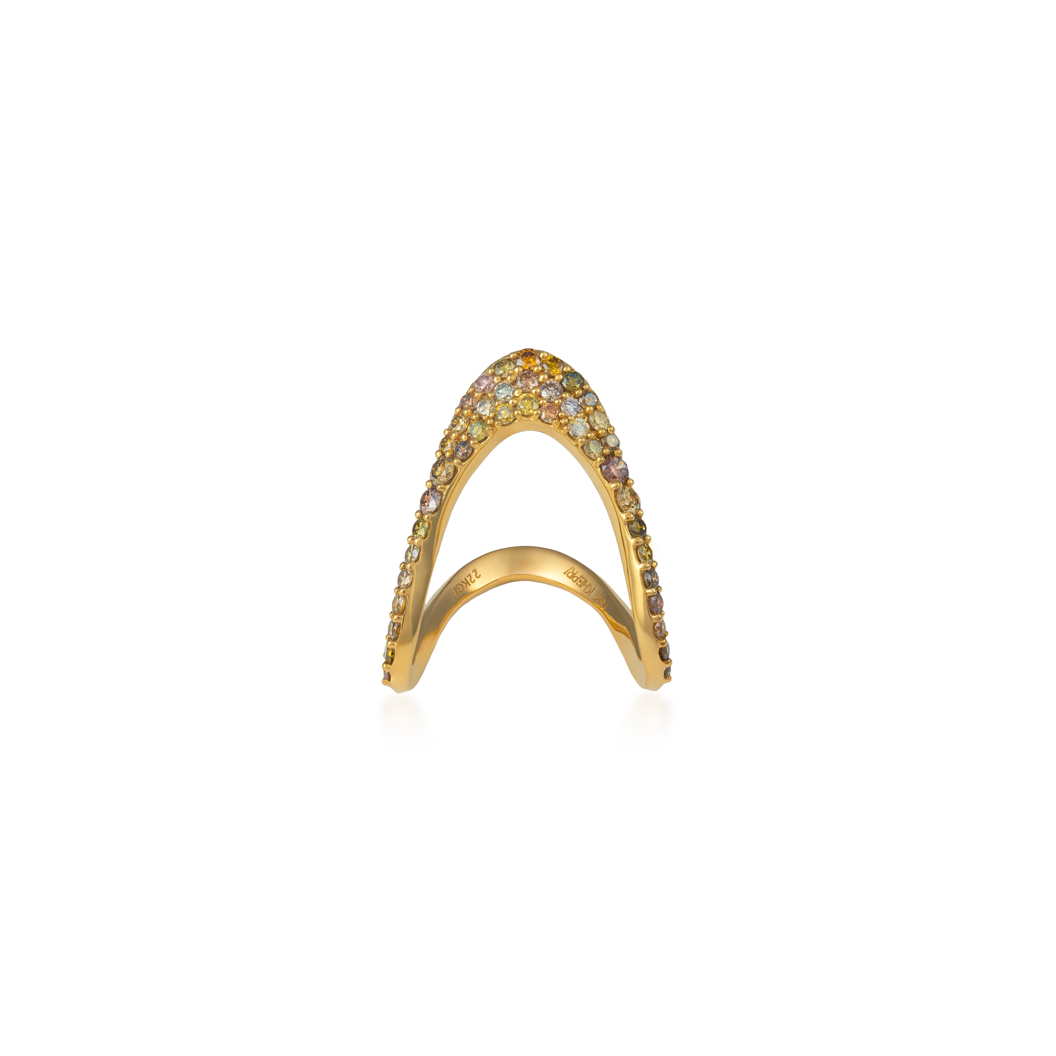 Bold, feminine & ever so beautiful when stacked—the Vanki Ring by Khepri Jewels is a contemporary essential for the modern jewelry collector. This striking V-shaped ring is crafted in a signature blend of 18K and 22K yellow gold, offering a rich golden hue with exceptional brilliance.