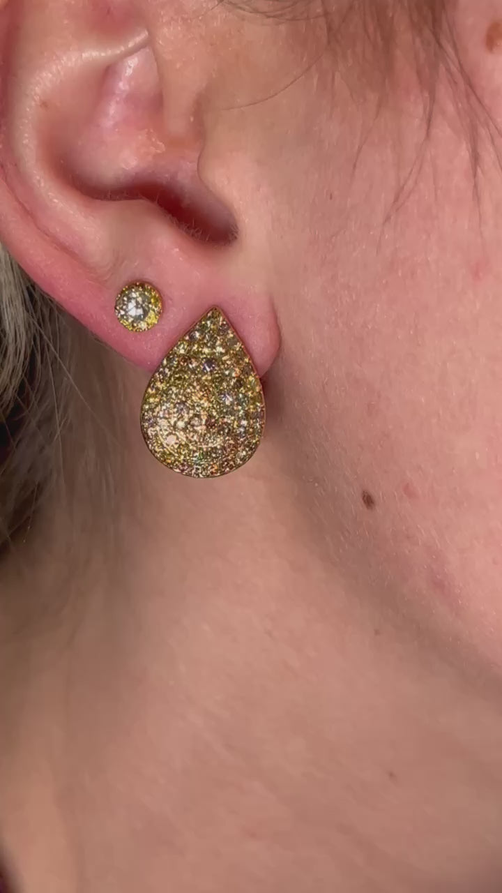 Fancy Color Pave Teardrop Diamond Earrings
