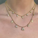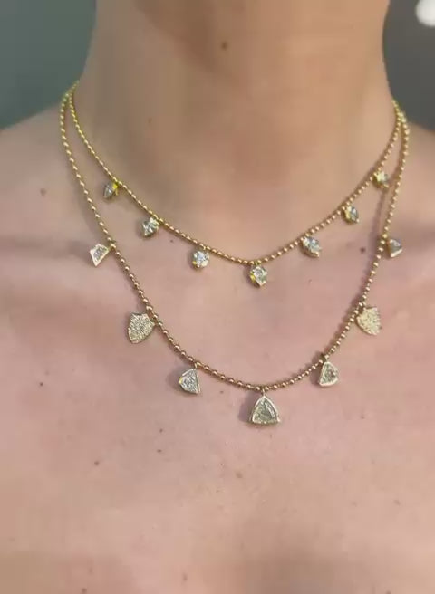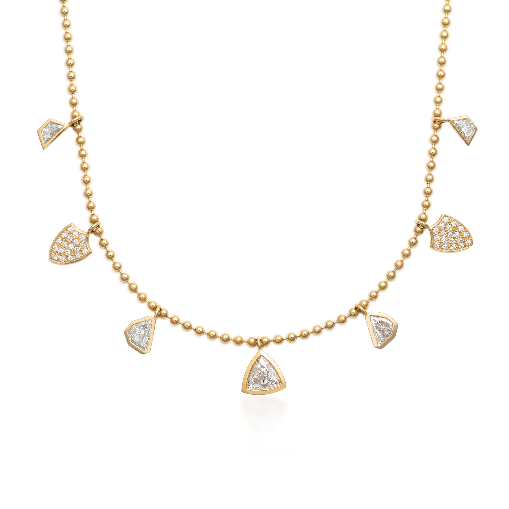 Necklace With 5 Multi Shape Diamonds Drops & 2 Pave Diamond Shields.