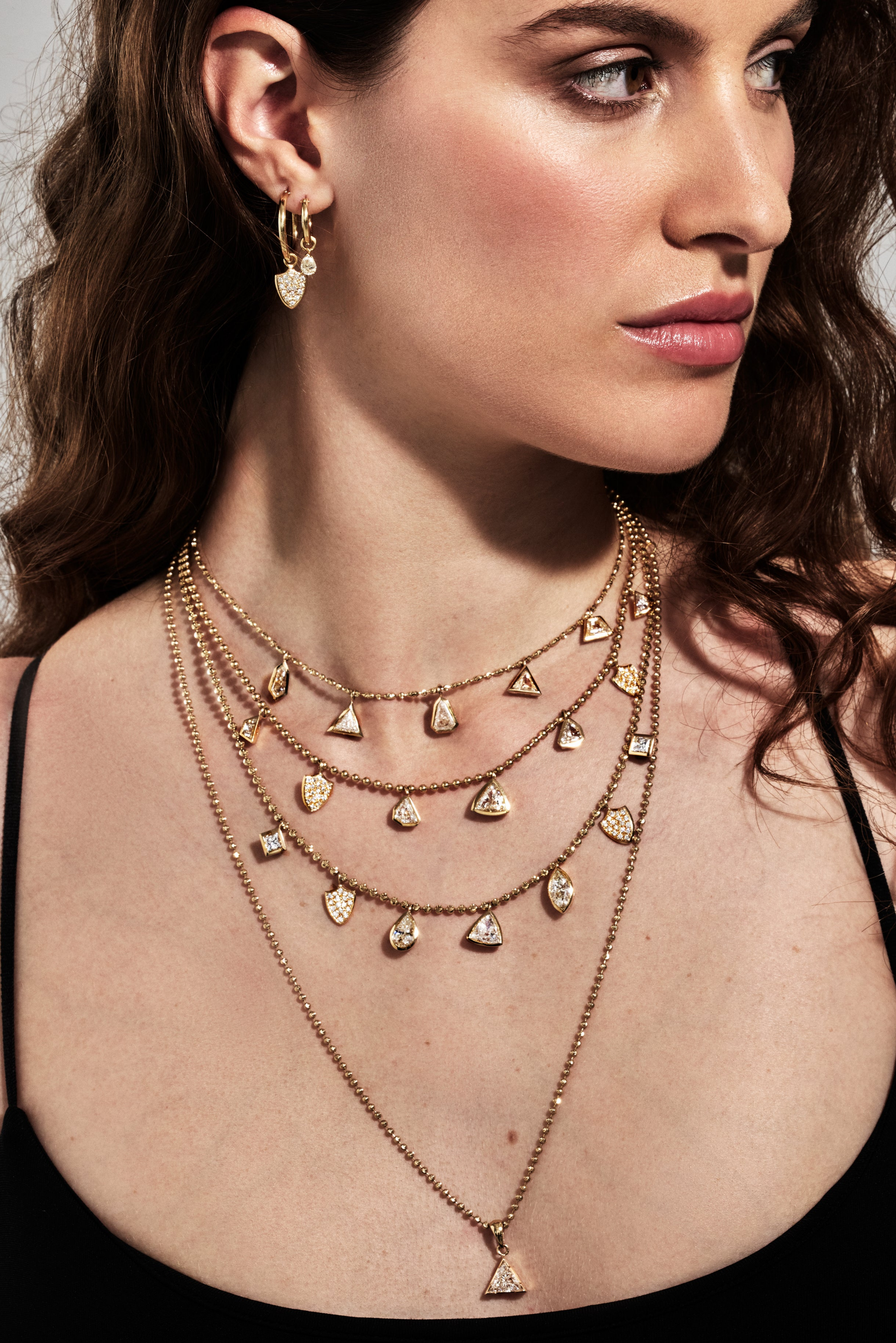 Necklace With 5 Multi Shape Diamonds Drops & 2 Pave Diamond Shields
