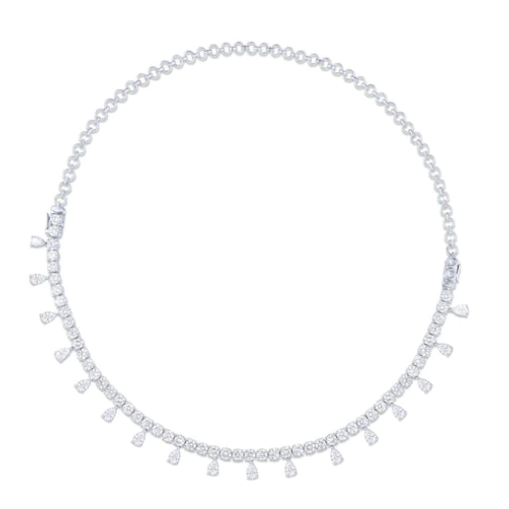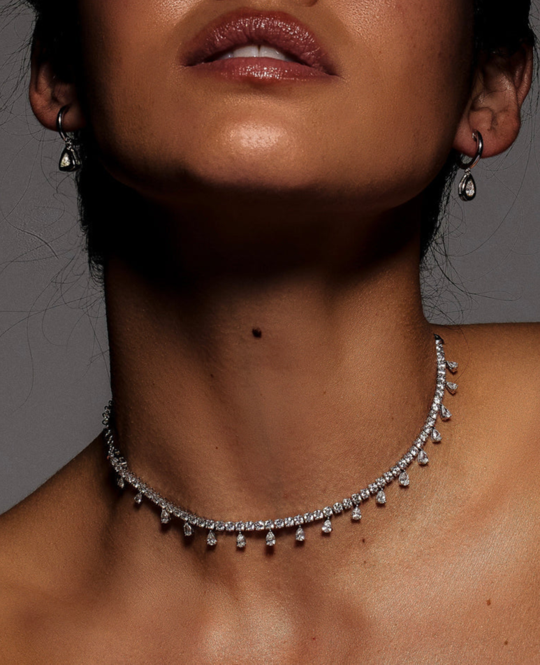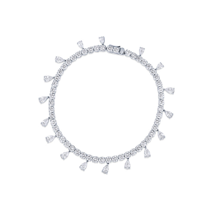 Interchangeable white diamond tennis necklace & bracelet with diamond pear drops